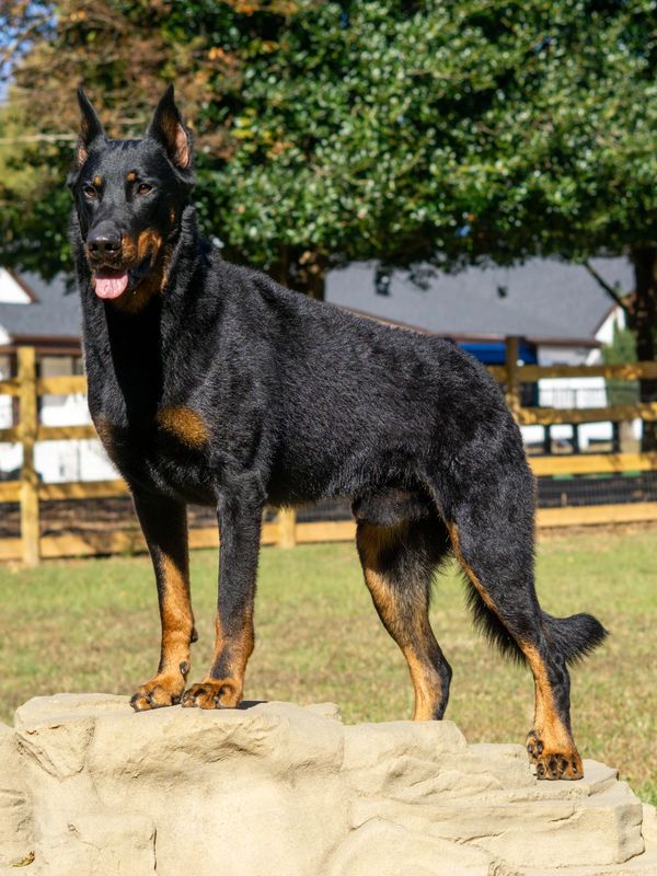 Usher represents what a working Beauceron should be: athletic, capable, and mentally steady with a clear sense of purpose. He is a dog built for real work, powerful without heaviness, efficient in movement, and able to go all day. His structure is functional and honest, emphasizing endurance, agility, and durability over flash.
